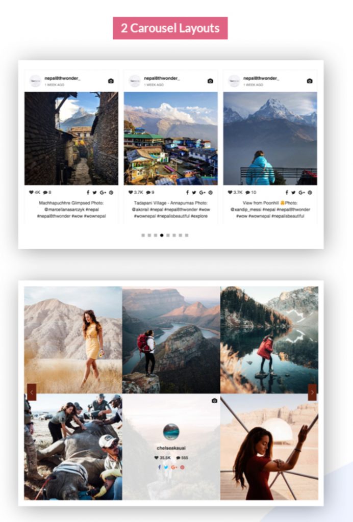 - Supports Instagram user feeds, recent media, any user timeline and hashtag.
