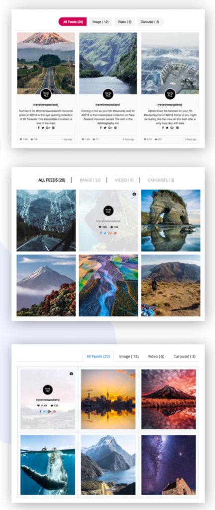 - You can easily display the instagram feeds using shortcodes in posts and pages.